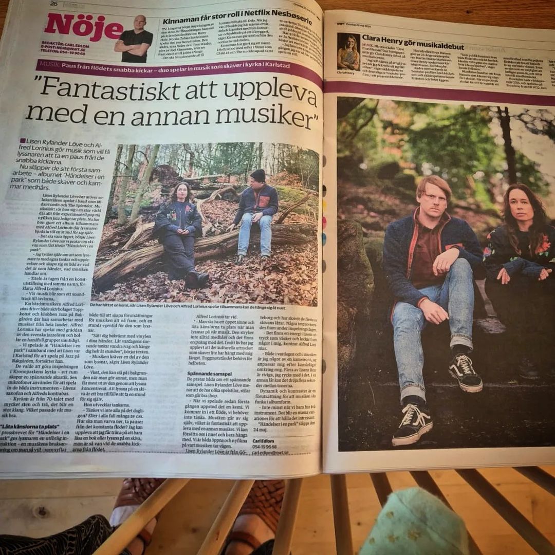 https://hymn.se/2024/05/22/lisen-rylander-love-alfred-lorinius-handelser-i-en-park/ - Big article in Nya Wermlandstidningen (NWT) may 22/2024
